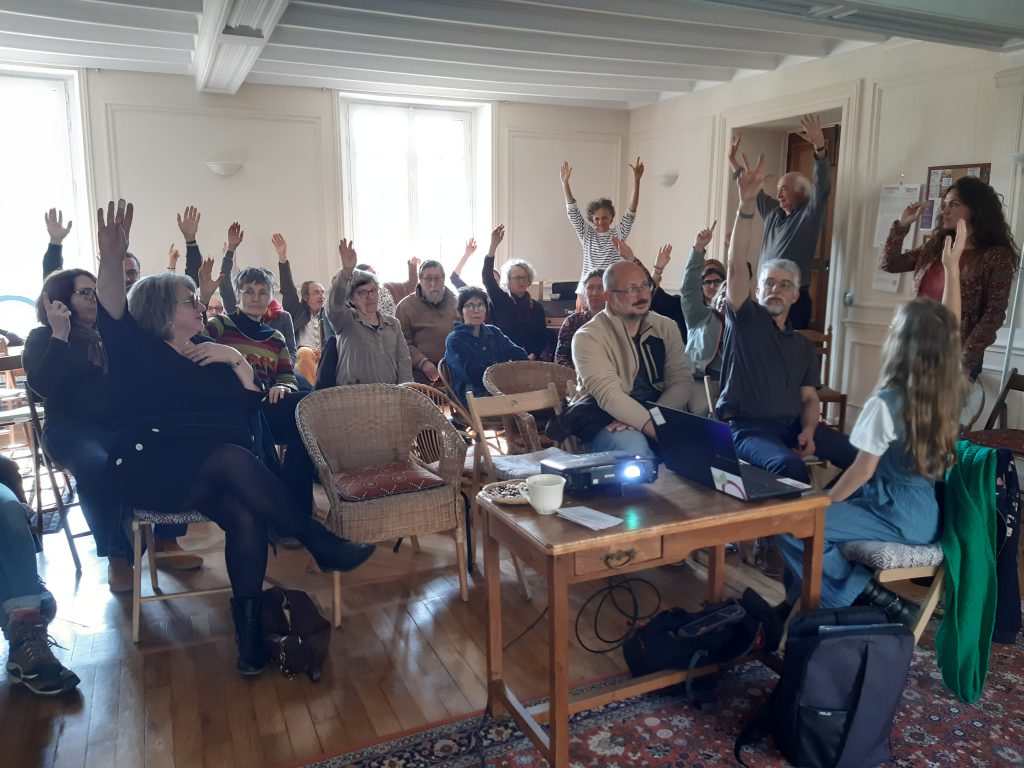 L’Assembrée Générale (AG) d’Objectif Terre 77 est une journée conviviale organisée en mars de chaque année et ouverte à tous·tes sur inscription. Elle comprend une partie statutaire avec la présentation et le vote du rapport d’activité et du rapport financier de l’année écoulée, ainsi que le vote du Conseil d’Administration par nos adhérents·es. Lors de cette journée, nous organisons des activités pour les enfants et des temps de partage, de réflexion et de fête pour tous·tes, autour de l’avenir de notre projet associatif. Cette journée est un moment clé qui renforce les liens entre nos membres !